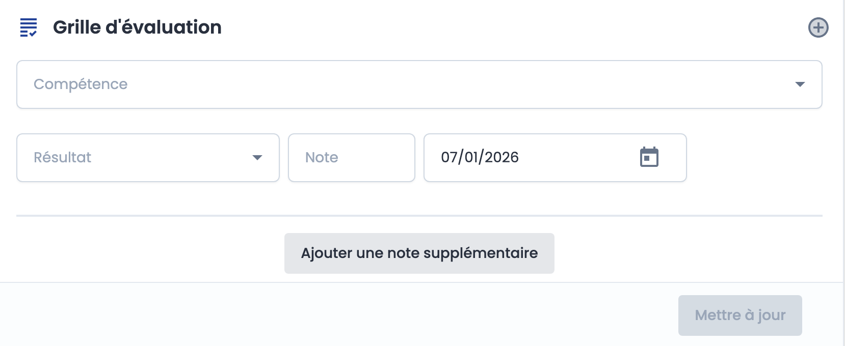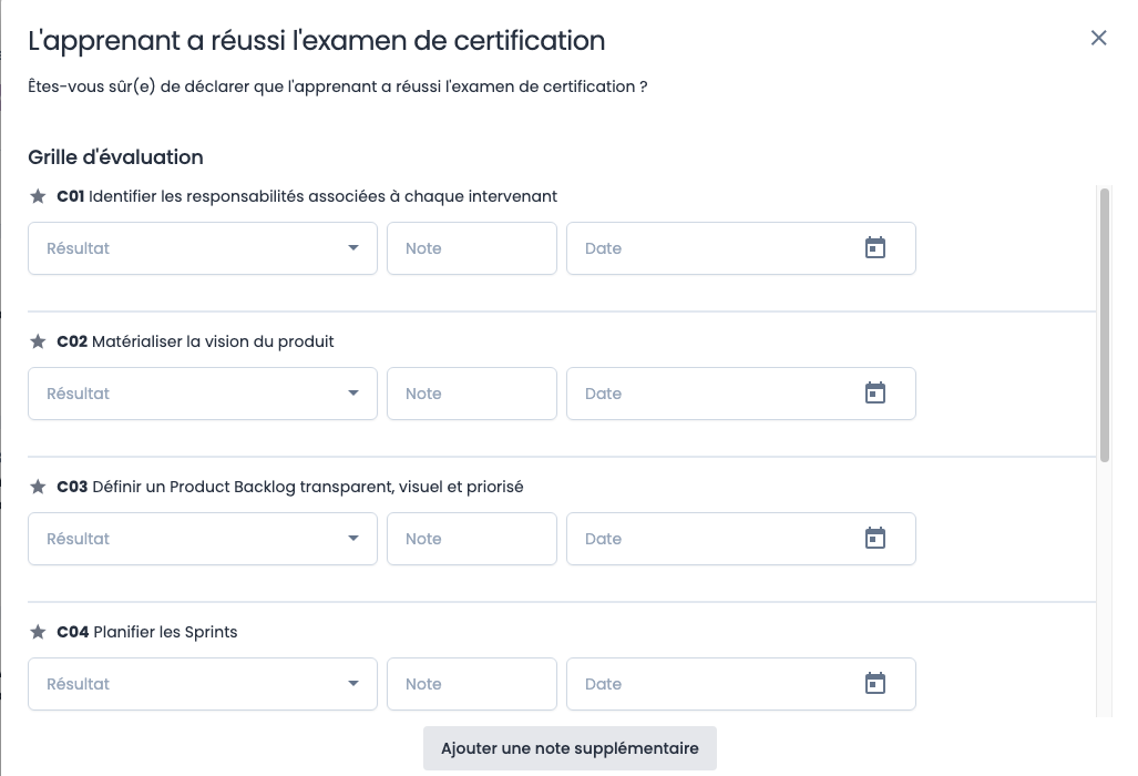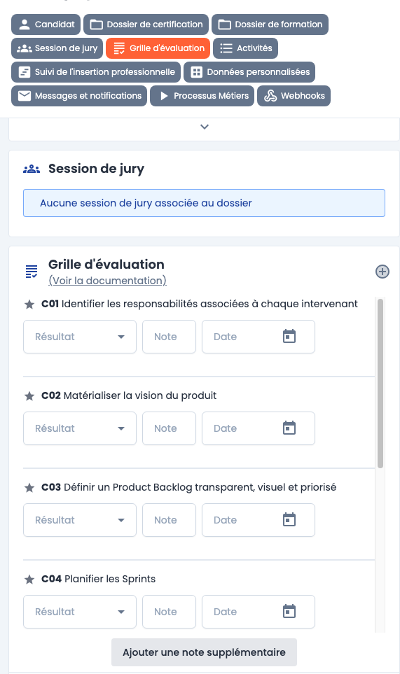 La grille d'évaluation doit se baser sur les compétences / blocs de compétences renseignées sur votre référentiel. Vous trouverez notre documentation sur le sujet ici.