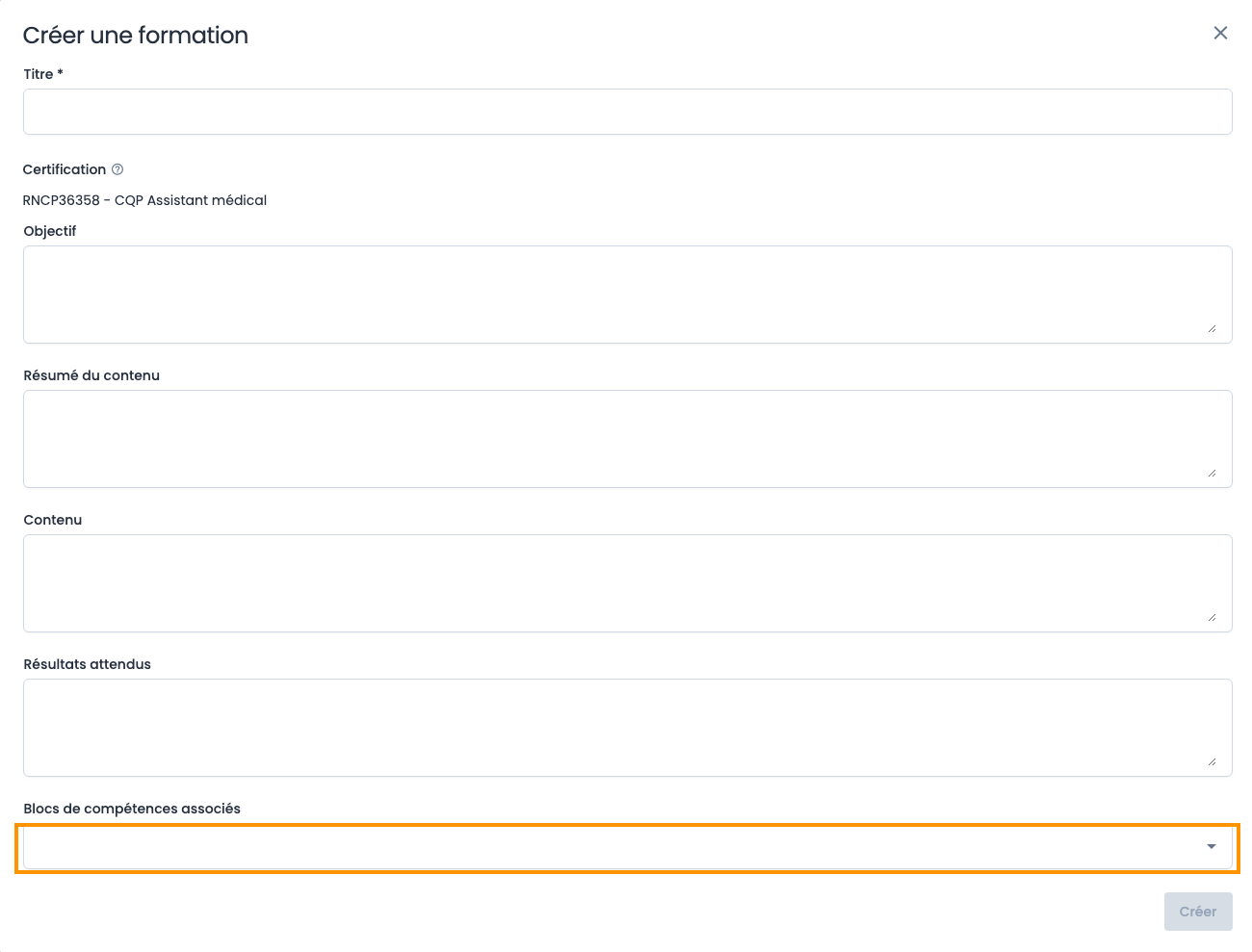 Lors de la création d'une formation, vous pouvez sélectionner le ou les blocs associés à cette formation :